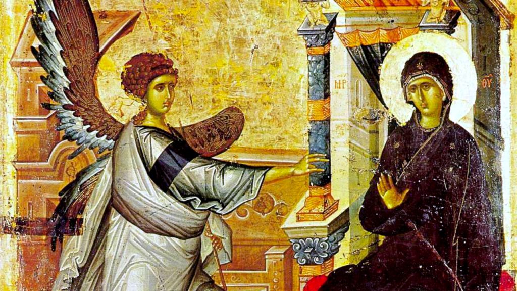Pola godine pošto je prvosvešteniku Zahariji projavio da će u dubokoj starosti dobiti sina koji će biti Gospodnji Preteča (Sveti Jovan Krstitelj), isti Gospodnji arhanđeo, Gavrilo, javio se Prečistoj Djevi Mariji u Nazaretu, pozdravivši je rečima: „Raduj se, blagodatna! Gospod je s tobom, blagoslovena si ti među ženama!“