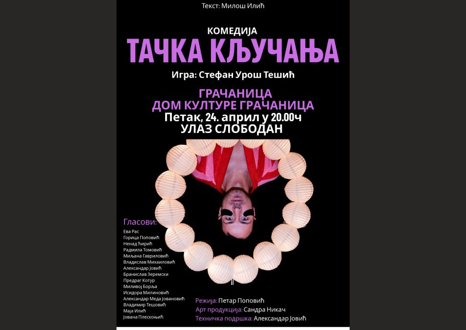 U velikoj sali Doma kulture „Gračanica“ u petak će biti izvedena monokomedija „Tačka ključanja“, sa početkom u 20.00 časova.