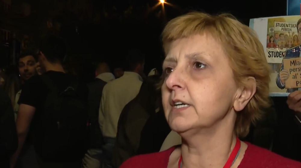 „Naprednjaci ne smeju da odu, smanjio se broj u nekom trenutku, onda su ponovo počeli da se okupljaju, sad su doneli i ozvučenje, očigledno je da su dobili naredbu da ne smeju da odu odavde, nije bilo nekih preteranih sukoba do sada“, izjavila je ona na skupu u Zemunu za televiziju N1.